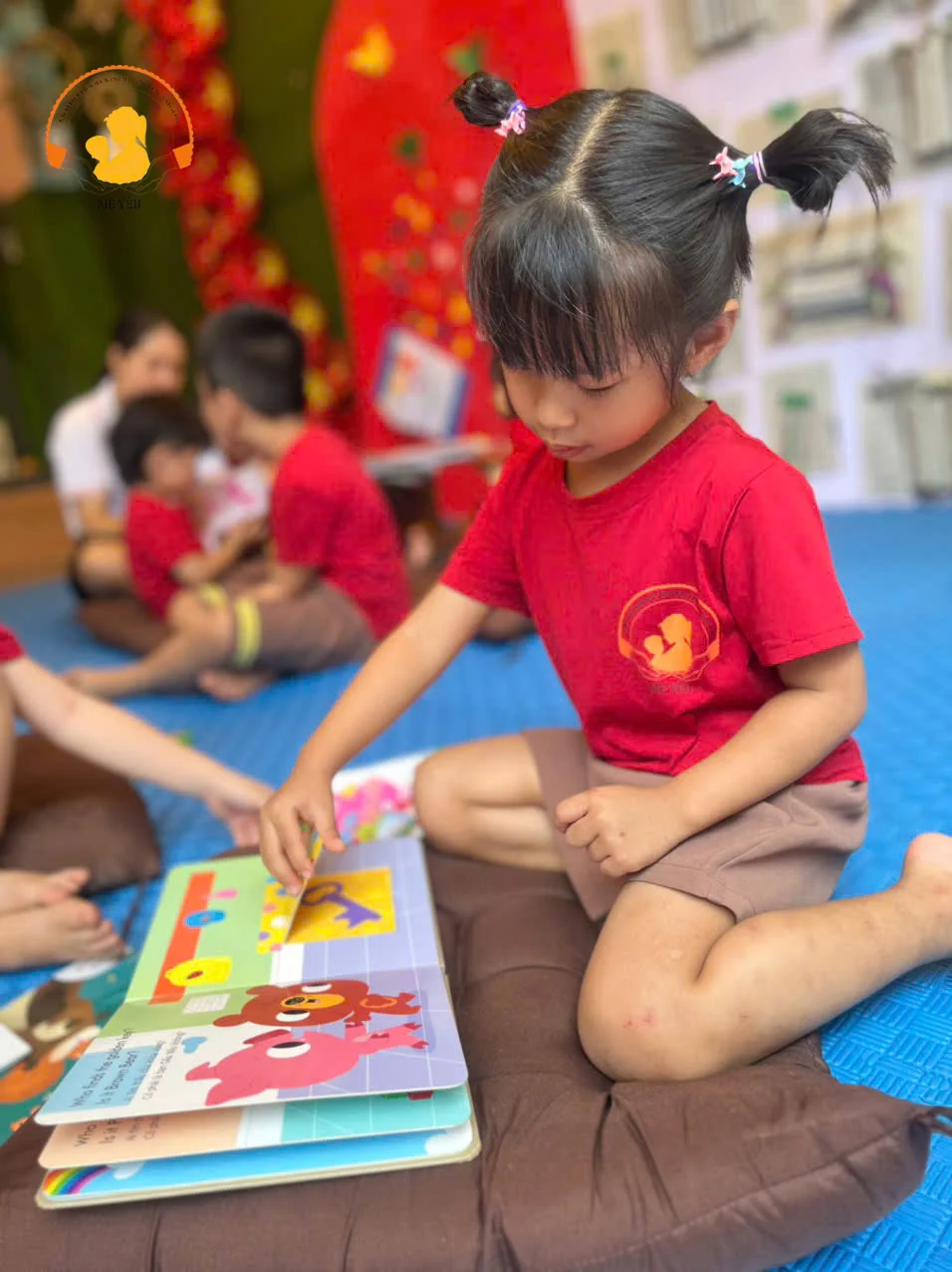 Những đôi mắt tròn xoe khám phá thế giới qua những trang sách đầy màu sắc.